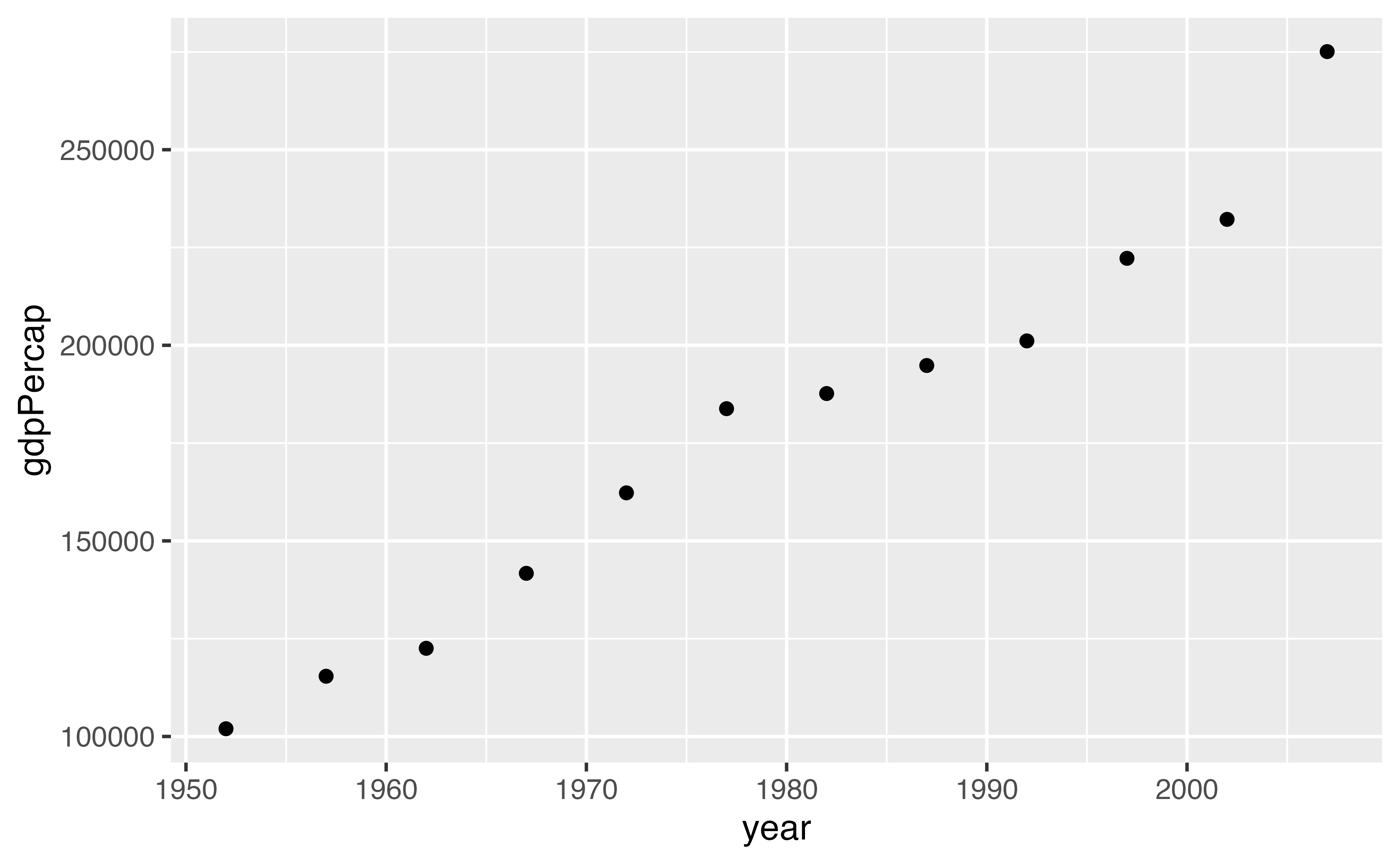 summarize(gdpPercap = sum(gdpPercap))# A tibble: 12 × 2