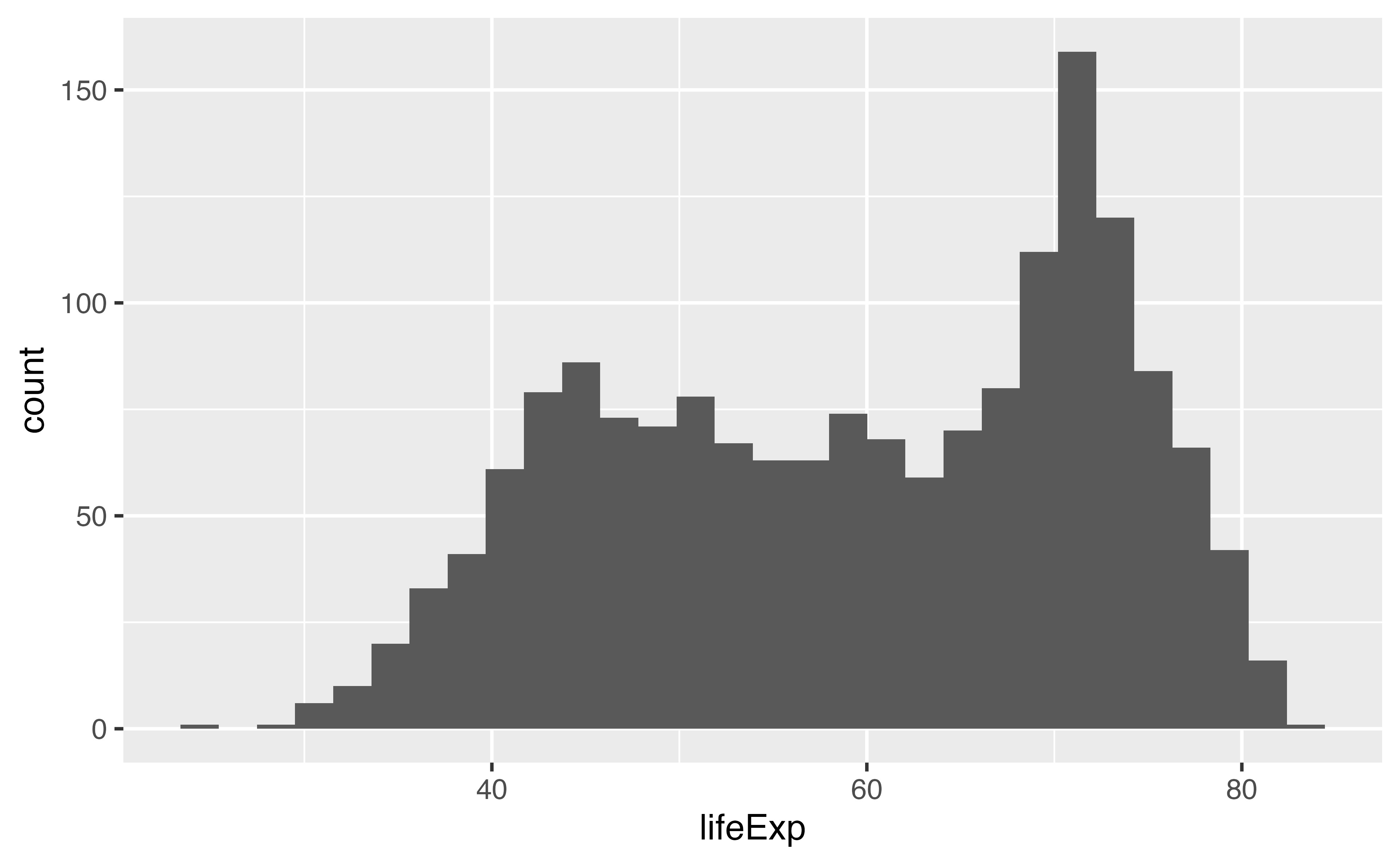 ... to pass the arguments of your function, filter_summarize(), to filter().filter_summarize() with year == 1952.filter_summarize() again for 2002, but also filter countries that have the word ” and ” in the country name (e.g., it should detect “Trinidad and Tobago” but not “Iceland”). Use str_detect() from the stringr package.Error in `geom_histogram()`: